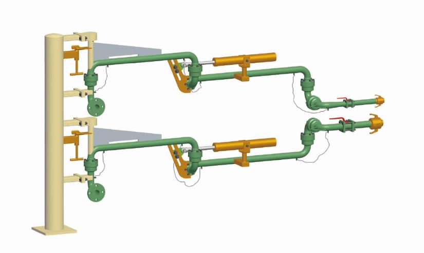 4. 外臂:可在水平面和垂直面的范圍內轉動,主要用于裝卸臂同槽車、槽船調整對接工作位置的部件